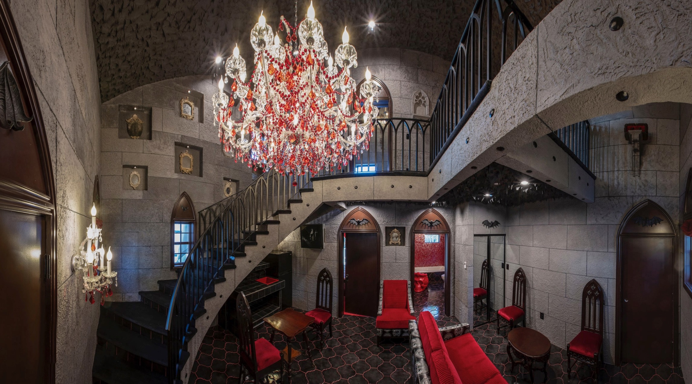 Dracula’s Fangs Cottage is located in Catskills, New York, and is another wonderful place to visit for your romantic vacation on Halloween. The property has a beautiful theme throughout, with crimson-colored walls, an elegant staircase, and even a throne. There are hiking trails, two large master bedrooms with their own bathrooms, and a spot to lounge outside in the sun. While this place does have the capability to hold a group of people, it is usually the best when it comes to two people on a romantic getaway.